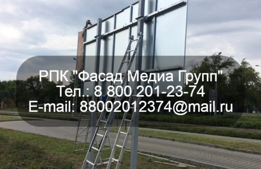РПК «Фасад Медиа Групп» изготовило и установило рекламный щит 3х6 м. Согласование конструкции занимался юридический отдел нашей компании. Рекламная конструкция была изготовлена из качественный материалов, способных выдерживать сильные ветровые нагрузки