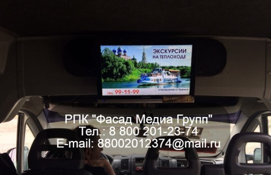 РПК «Фасад Медиа Групп» разместило рекламу на мониторах в общественном транспорте. Реклама размещена на всех мониторах города. Период размещения рекламы – 2 месяца. Длина ролика – 10 сек. Выходов в час – 4